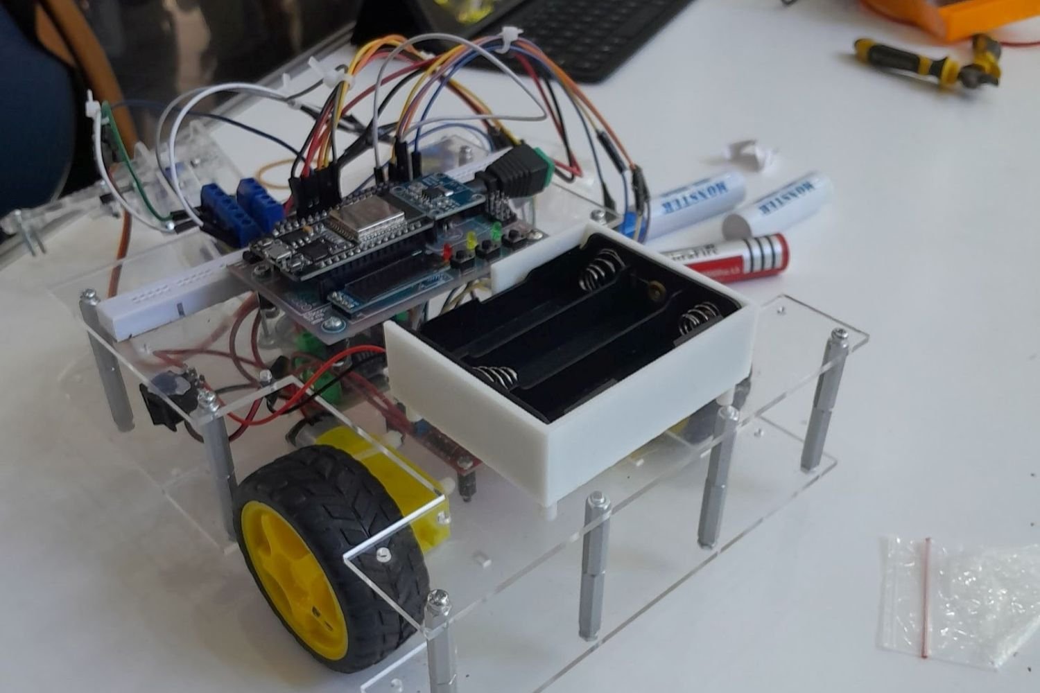 Sementara itu, mahasiswa tingkat dua menghadirkan robot pengangkut bola yang dapat dikendalikan melalui aplikasi Android. Proyek ini mengintegrasikan keterampilan dari berbagai modul praktikum sebelumnya.