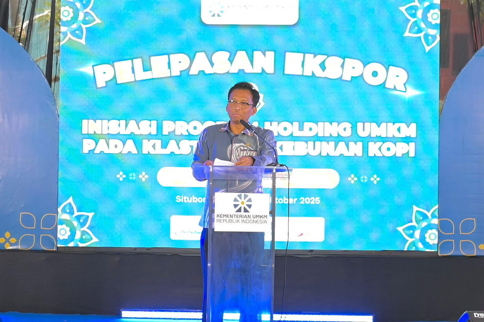 Situbondo, Jawa Timur, EKOIN.CO – Deputi Bidang Usaha Menengah, Kementerian Usaha Mikro, Kecil dan Menengah (UMKM) Bagus Rachman melepas 15 ton kopi specialty Argopuro Walida senilai Rp3 miliar ke Jeddah, Arab Saudi, Senin (6/10/2025).