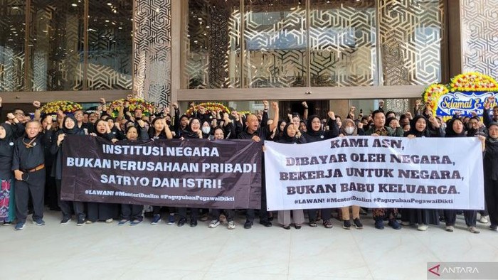 Jakarta, EKOIN.CO – Ratusan Pegawai Negeri Sipil (PNS) menggelar aksi unjuk rasa di kantor Kementerian Pendidikan Tinggi, Sains, dan Teknologi (Kemdiktisaintek), Jakarta. Para peserta aksi memprotes keputusan pemecatan yang disebut dilakukan secara sepihak oleh pihak kementerian. Aksi ini menarik perhatian publik, terutama terkait regulasi pemberhentian PNS yang diatur dalam peraturan pemerintah.