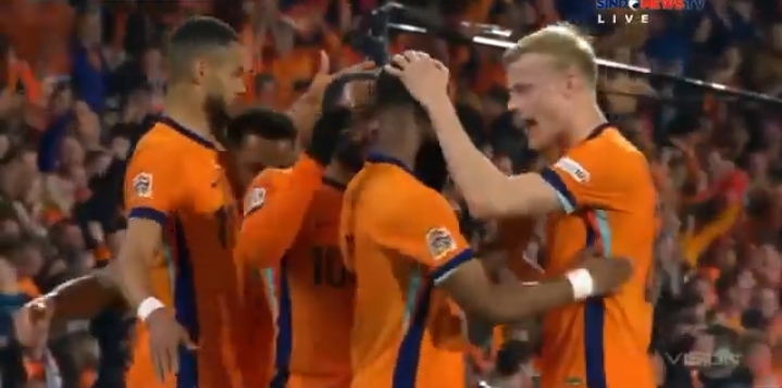Belanda tidak tinggal diam. Pada menit ke-28, serangan dari sayap kanan yang dimulai oleh Tijjani Reijnders berbuah gol. Umpan silang Reijnders sempat dibuang oleh pertahanan Spanyol, namun bola rebound jatuh ke kaki Justin Kluivert. Kluivert memberikan assist kepada Cody Gakpo, yang dengan tenang menyarangkan bola ke gawang Spanyol. Kedudukan pun menjadi 1-1.