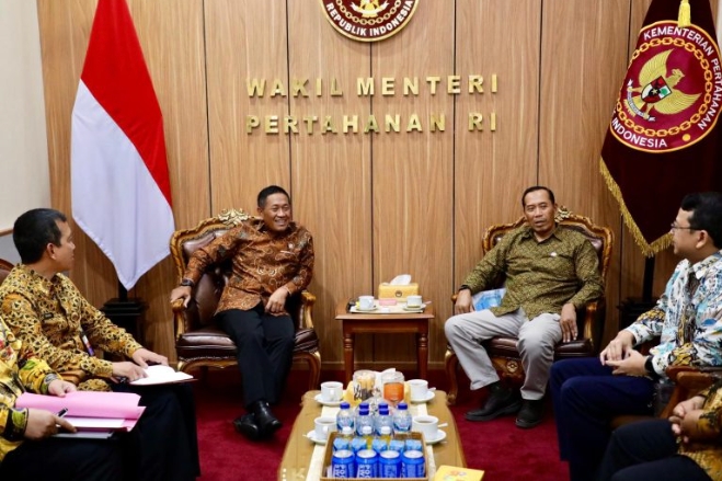 Jakarta, EKOIN.CO – Wakil Menteri Pertahanan (Wamenhan) RI Donny Ermawan Taufanto menerima kunjungan Wakil Menteri Pendidikan Tinggi, Sains, dan Teknologi (Wamendiktisaintek) Fauzan beserta jajarannya di Kantor Kementerian Pertahanan, Jumat (9/5/2025). Pertemuan ini membahas rencana pelaksanaan Kuliah Kerja Nyata (KKN) Kebangsaan di wilayah perbatasan sebagai upaya memperkuat nasionalisme dan pemberdayaan masyarakat.