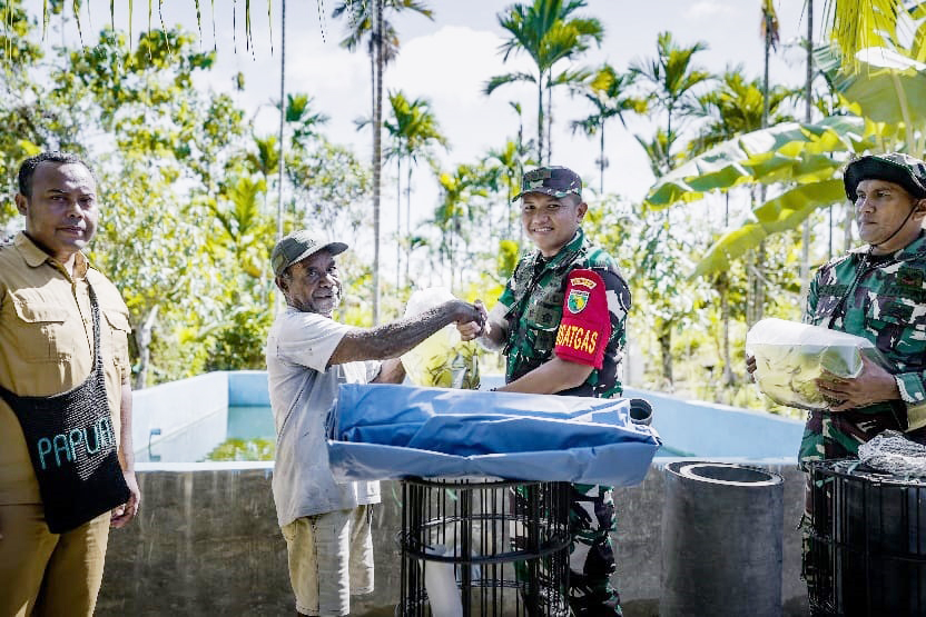 Timika, EKOIN.CO – Satuan Tugas (Satgas) TNI Manunggal Membangun Desa (TMMD) kembali menunjukkan kepeduliannya kepada masyarakat. Dalam rangka mendukung Program Unggulan Kepala Staf Angkatan Darat (Kasad), Satgas TMMD memberikan bantuan berupa kolam ikan dan bibit lele kepada warga di Kampung Naena Muktipura, Distrik Iwaka, Kab. Mimika. Rabu (14/5/2025).