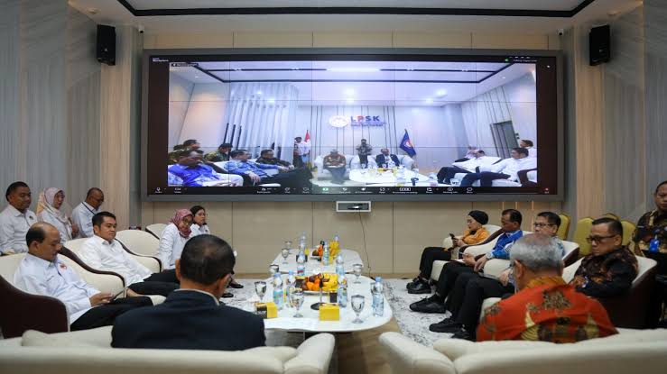 Jakarta Timur, EKOIN.CO – Kepala Badan Narkotika Nasional Republik Indonesia (BNN RI), Marthinus Hukom, melakukan audiensi dengan Ketua Lembaga Perlindungan Saksi dan Korban (LPSK), Dr. Achmadi, di Kantor LPSK, Jakarta Timur, pada Kamis (15/5). Pertemuan ini bertujuan memperkuat kerja sama dalam pemberantasan narkotika, dengan melibatkan perwakilan BNN Provinsi dan BNN Kabupaten/Kota secara daring.