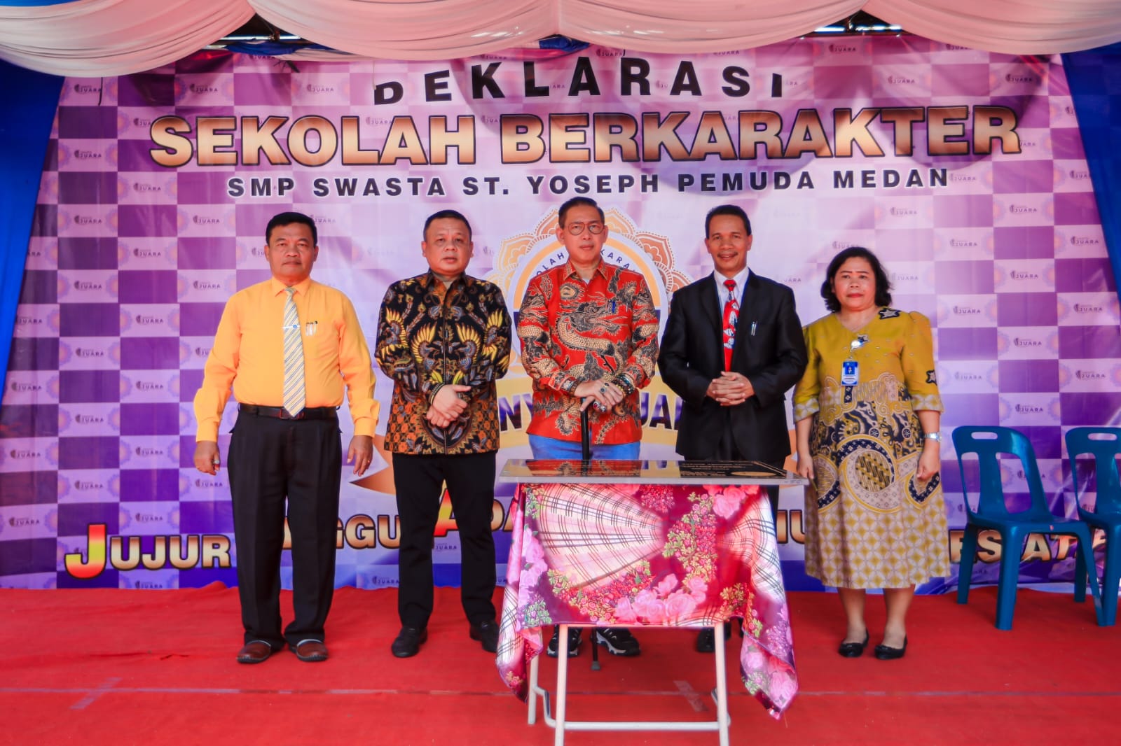 Deklarasi Sekolah Berkarakter ini ditandai dengan pemukulan gong dan penandatanganan prasasti serta penarikan tirai oleh Benny Sinomba Siregar bersama Ketua DPRD Medan. Dalam pertemuan ini juga dibagikan buku pendidikan karakter yang diinisiasi SMP Swasta ST Yoseph Pemuda.