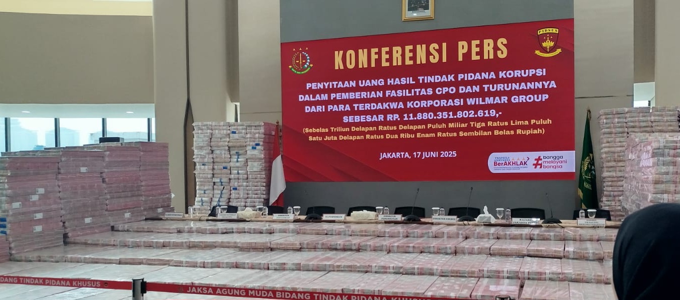 Jakarta, EKOIN.CO – Kejaksaan Agung Republik Indonesia menyita uang sebesar Rp 11,880,351,802,619 (sekitar Rp 11,8 triliun) dari lima entitas dalam Wilmar Group, terkait kasus korupsi ekspor crude palm oil (CPO). Uang itu kini disimpan dalam rekening penampungan Jampidsus sebagai pengembalian kerugian keuangan negara dan barang bukti untuk kasasi Mahkamah Agung .