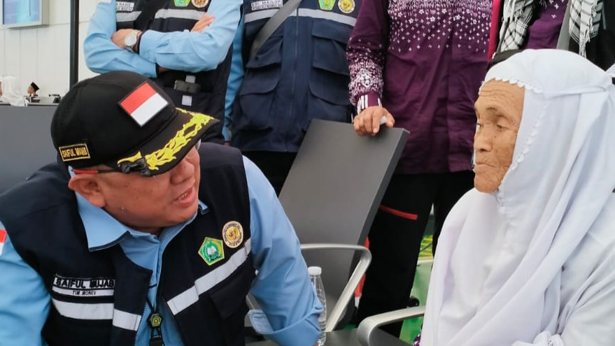 “Alhamdulillah, semoga ibu menjadi haji mabrur ya bu,” sahut Saiful Mujab kepada Sutiah, menunjukkan penghormatan dan doa tulus kepada jemaah tertua itu.