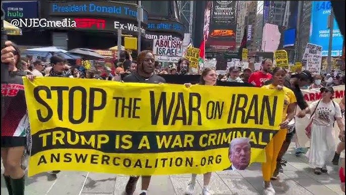 New York, EKOIN.CO – Aksi unjuk rasa melawan serangan udara Amerika ke Iran terjadi di sejumlah kota besar Amerika Serikat pada Minggu 23 Juni 2025. Massa membawa spanduk bertuliskan “Trump is a war criminal” yang artinya “Trump adalah penjahat perang”, serta menyerukan agar perang dihentikan. Mereka juga menuntut agar anggaran militer dialihkan untuk pendidikan dan layanan kesehatan.