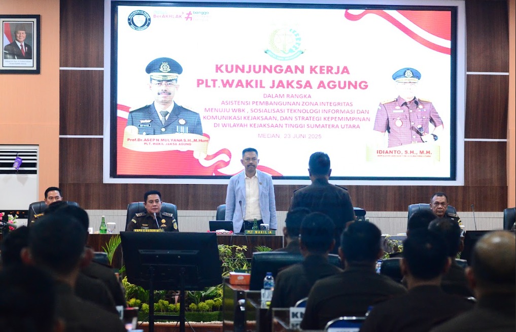 Aceh, Ekoin.co –Pelaksana Tugas (Plt.) Wakil Jaksa Agung Republik Indonesia, Dr. Asep N. Mulyana, melakukan kunjungan kerja ke Kejaksaan Tinggi Sumatera Utara pada Senin, 23 Juni 2025. Kunjungan ini merupakan bagian dari agenda penguatan Reformasi Birokrasi dan strategi kepemimpinan dalam tubuh Kejaksaan Republik Indonesia.