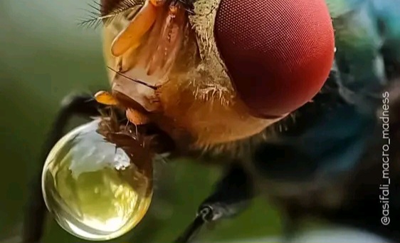 Selain itu, lalat rumah ternyata memiliki struktur tubuh yang sangat kompleks dan detail, jika dilihat melalui lensa mikroskop atau kamera makro. Salah satu fitur paling mencolok adalah matanya yang besar berwarna merah menyala. Mata ini terdiri dari ribuan lensa kecil yang memungkinkan lalat melihat dari berbagai sudut dalam waktu bersamaan.
