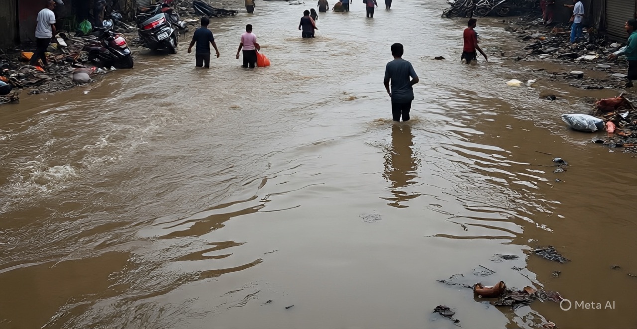 Banjir ini menciptakan situasi darurat, terutama di RT 03 dan RT 05, di mana genangan air merendam dapur rumah warga. Arus deras bahkan membalikkan kendaraan roda dua dan merusak pagar rumah.
