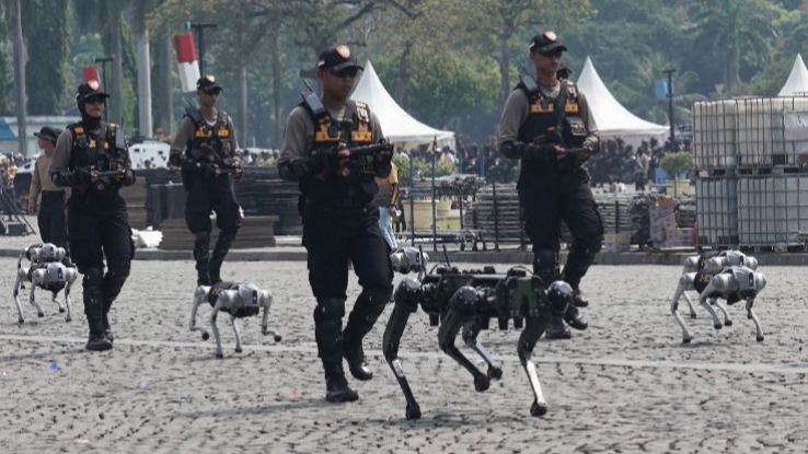 “Renstra Polri 2025 sd 2045 tentang penggunaan robot dalam membantu tugas-tugas Polri sudah ada. Tahun 2026 sudah dianggarkan untuk robodog, kegunaan sama dengan K9, untuk mendeteksi bahan-bahan dan benda-benda berbahaya, namun lebih efektif karena tidak perlu kita beri makan setiap hari, tidak perlu proses latihan dengan tenaga pawang, tahan cuaca ekstrem dan sebagainya,” terang Sandi.
