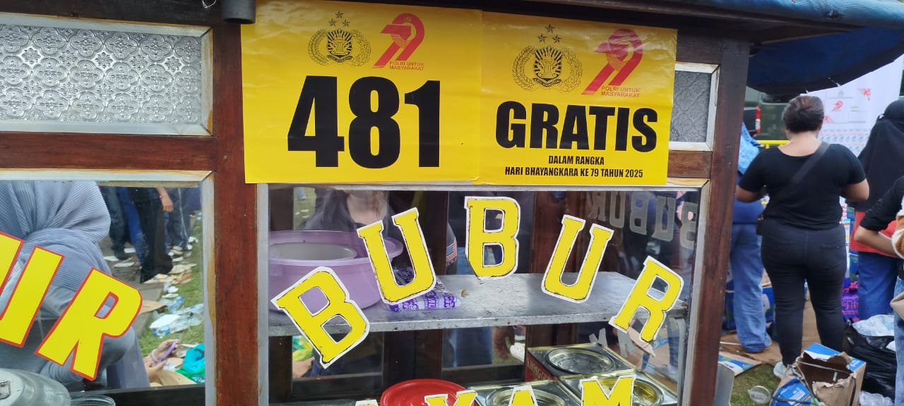 Di lokasi acara, puluhan gerobak makanan disediakan oleh panitia, menyajikan menu gratis bagi pengunjung. Bubur hangat dan ratusan porsi makanan bergizi lainnya dibagikan kepada warga yang datang sejak pagi. Kehadiran ratusan UMKM di area bazar kuliner juga menambah semarak suasana.