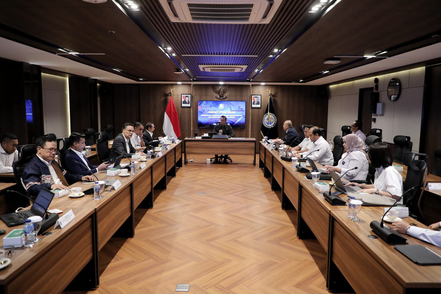 Rapat tersebut dihadiri oleh para pejabat eselon I, Staf Ahli Menteri, serta Staf Khusus Menteri Koordinator Bidang Infrastruktur dan Pembangunan Kewilayahan.