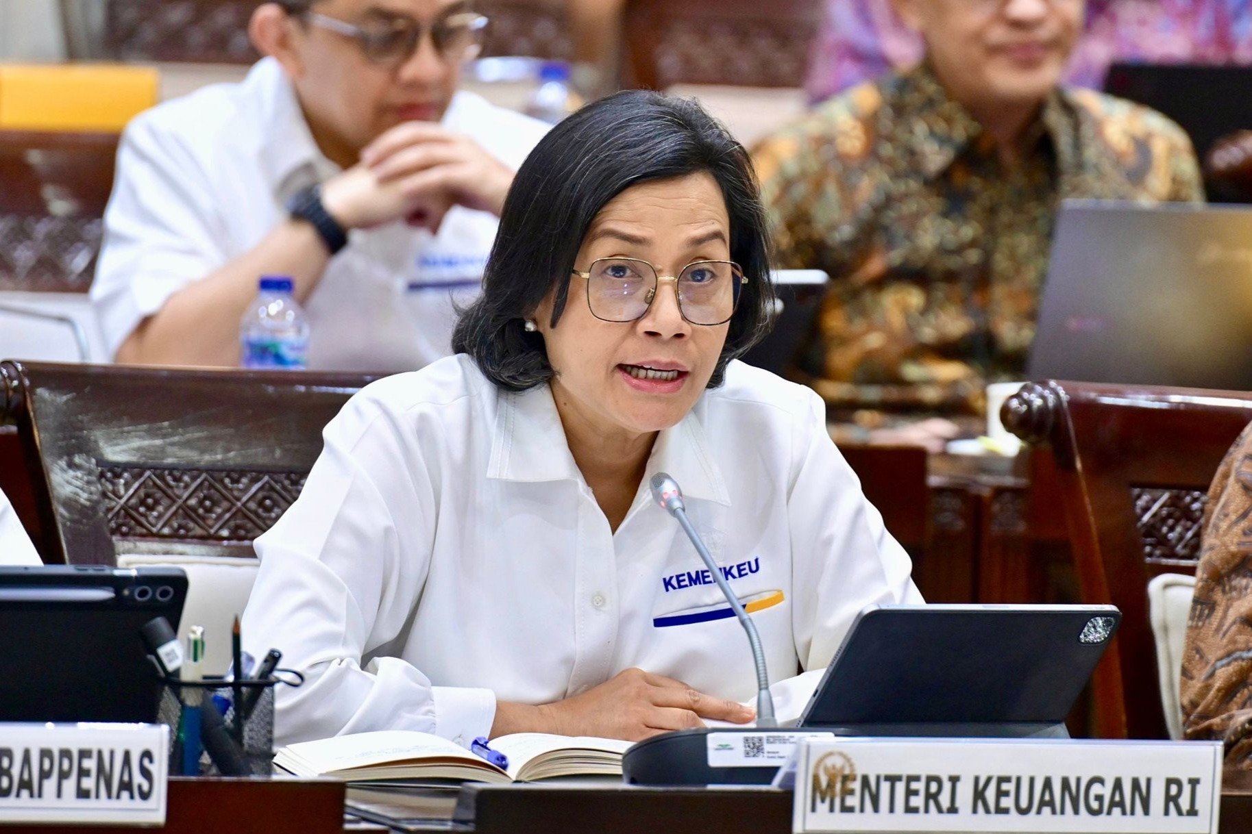Menteri Keuangan Sri Mulyani Indrawati menghadiri Rapat Kerja Komisi XI DPR RI yang digelar di Gedung Nusantara I, Senin, 7 Juli 2025.(Foto : Doc. Kemenkeu)