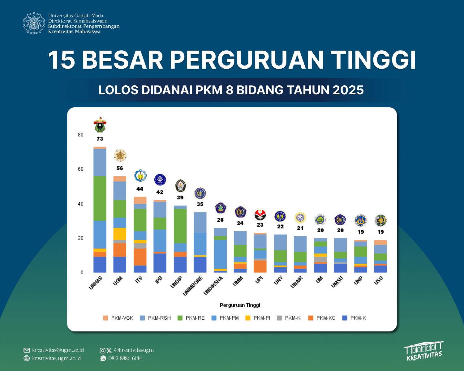 Secara keseluruhan, hasil pendanaan PKM ini mencerminkan upaya kolektif berbagai unit di UGM dalam membina mahasiswa melalui riset, pengabdian, dan inovasi.