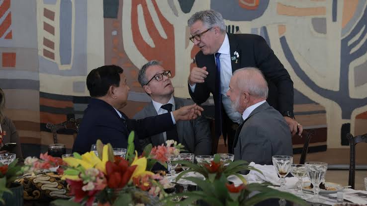 BRASILIA, EKOIN.CO — Presiden Republik Indonesia, Prabowo Subianto, menghadiri jamuan santap siang kenegaraan yang diselenggarakan oleh Presiden Republik Federatif Brasil, Luiz Inácio Lula da Silva, di Itamaraty, Kompleks Kementerian Luar Negeri Brasil, pada Rabu, 9 Juli 2025.