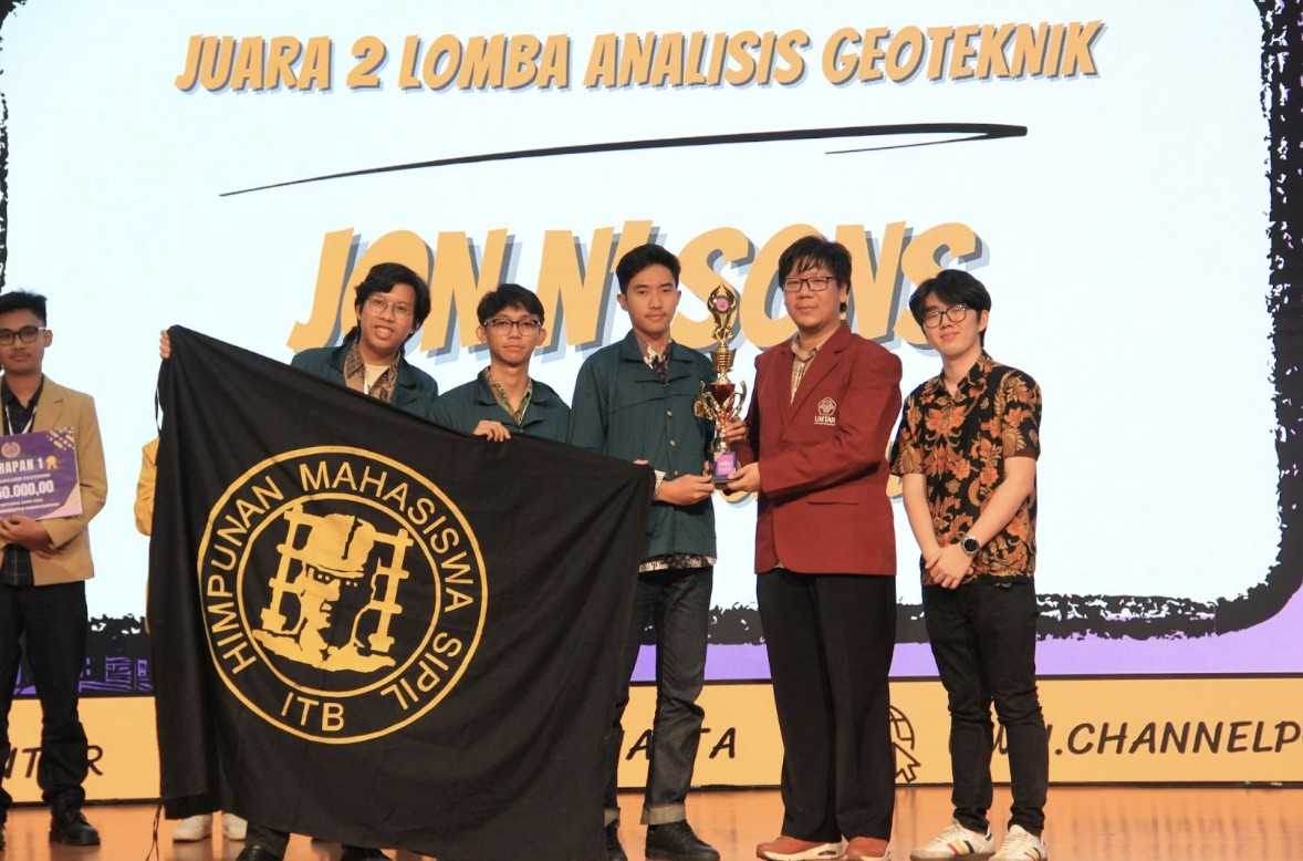 Jakarta, EKOIN.CO – Tim Jon n’ Sons dari Program Studi Teknik Sipil Institut Teknologi Bandung (ITB) meraih Juara 2 pada ajang Lomba Analisis Geoteknik Tingkat Nasional 2025. Kompetisi ini diselenggarakan Universitas Tarumanagara sejak 3 Maret hingga 26 Mei 2025.