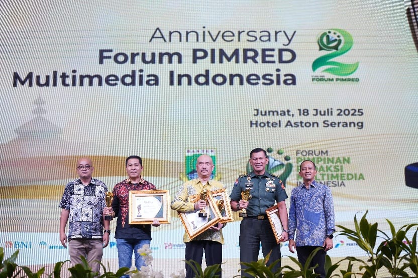 Serang , Banten – EKOIN – CO – (Puspen TNI). Kepala Pusat Penerangan (Kapuspen) TNI Mayjen TNI Kristomei Sianturi, mewakili Panglima TNI Jenderal TNI Agus Subiyanto menerima penghargaan Pimred Award 2025 pada malam puncak perayaan HUT ke-2 Forum Pemred Multimedia Indonesia (FPRMI) di Ballroom Hotel Aston, Serang, Banten, Jumat (18/7/2025).