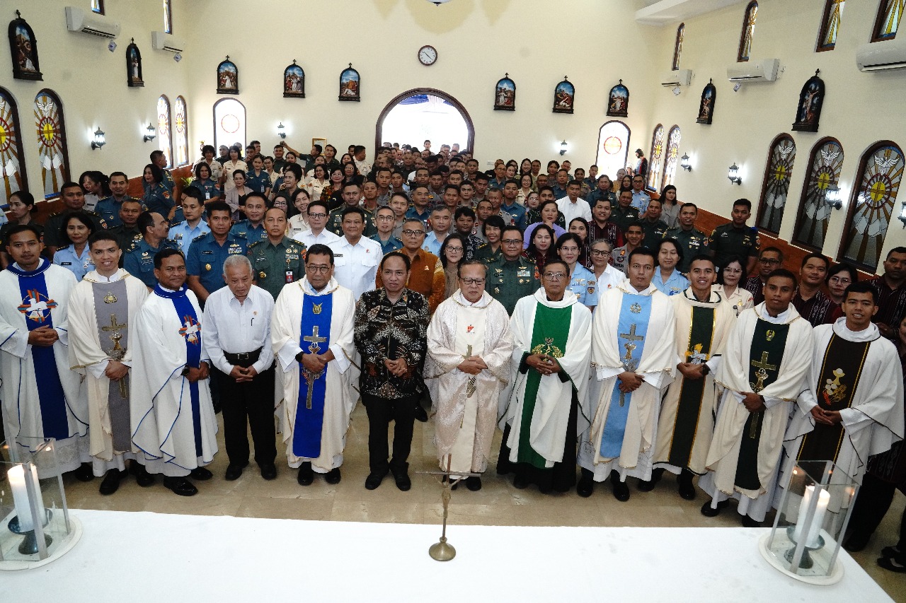 Jakarta , EKOIN – CO – Peluncuran Website OCI dan buku dipimpin Uskup TNI-Polri, Ignatius Kardinal Suharyo dan dihadiri sekitar 220 peserta dari prajurit TNI, anggota Polri, PNS, keluarga besar, dan purnawirawan Katolik, bertempat di Kapel Santa Maria Santa Fatima Mabes TNI Cilangkap, Rabu (23/7/2025). Buku “75 Tahun Ordinariat Militer Indonesia” secara simbolis di tandatangani dan diserahkan kepada Bapak Purnomo Yusgiantoro dari Purnomo Yusgiantoro Center, selaku Pemuka Umat Katolik dan diserahkan kepada penyandang dana, Brigjen TNI Purn Pontianus Gunung Sarasmoro selaku perwakilan dari Dewan Karya Pastoral OCI yang kemudian akan disampaikan kepada Pimpinan dan jajaran TNI dan Polri.