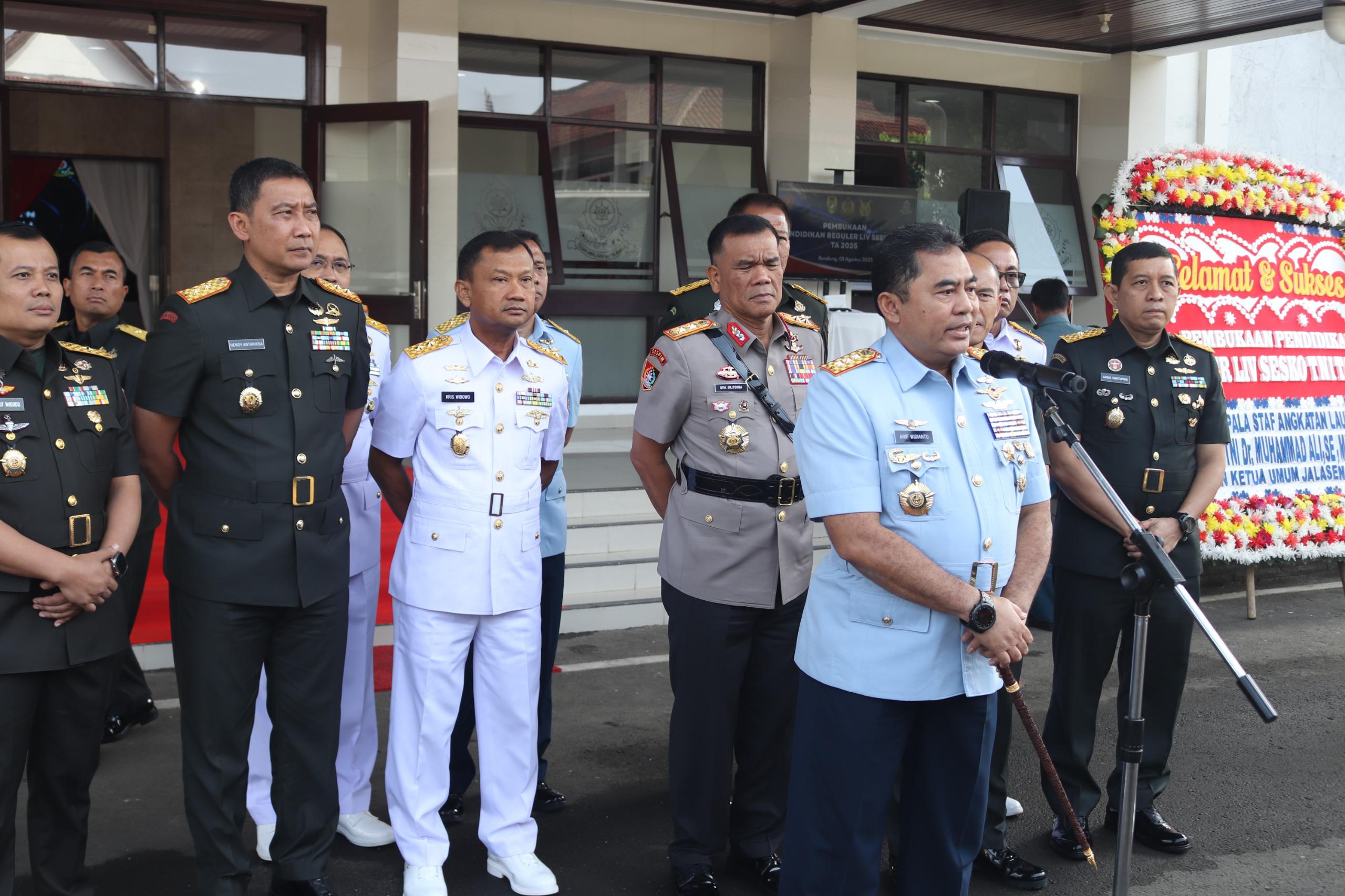 Bandung , – EKOIN-CO- Komandan Seskoad, Mayor Jenderal TNI Hendy Antariksa, menghadiri Upacara Pembukaan Pendidikan Reguler (Dikreg) LIV Sesko TNI Tahun Anggaran 2025 di Gedung Serasan, Sesko TNI, pada hari Selasa, 5 Agustus 2025.