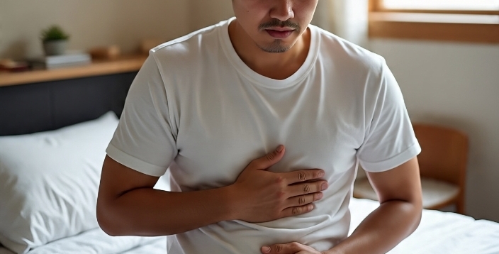 Hernia hiatal sedikit berbeda karena terjadi di bagian dalam tubuh, tepatnya saat lambung menembus diafragma dan masuk ke rongga dada. Gejalanya meliputi heartburn, gangguan pencernaan, nyeri dada non-jantung, kesulitan menelan, dan suara serak yang bisa muncul akibat iritasi pada tenggorokan.