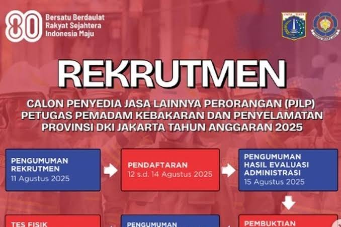 Jakarta, EKOIN.CO – Pemerintah Provinsi (Pemprov) DKI Jakarta resmi membuka lowongan kerja untuk posisi petugas Dinas Penanggulangan Kebakaran dan Penyelamatan (Damkar) dengan kuota sebanyak 1.000 orang. Pendaftaran dibuka mulai Selasa (12/8/2025) hingga Kamis (14/8/2025) secara online di masing-masing wilayah kota.