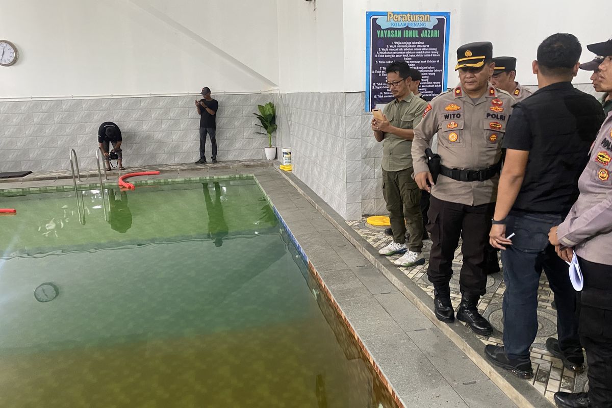 Polisi telah melakukan olah tempat kejadian perkara (TKP) di lokasi kolam renang. Proses pemeriksaan melibatkan penyisiran area, pengukuran kedalaman kolam, dan pengumpulan barang bukti yang relevan dengan peristiwa tersebut.