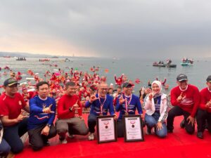 Acara turut dihadiri oleh sejumlah pejabat penting, di antaranya Wakil Gubernur Lampung, Danrem 043/Gatam, Danbrigif 4 Marinir/BS serta jajaran Forkopimda Lampung dan Bupati Pesawaran, Dendi Romadhona. Kegiatan ini juga diisi dengan penyerahan Piagam Rekor MURI. Melalui Kolaborasi Berenang Merdeka 2025, semangat gotong royong dan nasionalisme masyarakat Lampung semakin terpatri, sekaligus menjadi momentum untuk meneguhkan tekad bersama menjaga kedaulatan bangsa dan kelestarian alam Indonesia.