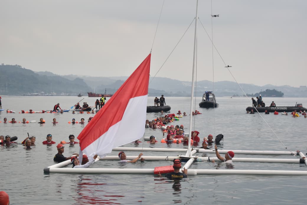 Rangkaian acara diawali dengan upacara pengibaran Bendera Merah Putih di permukaan laut yang melibatkan perenang terbanyak, yaitu 565 orang, sekaligus berhasil mencatatkan diri dalam Museum Rekor Dunia Indonesia (MURI). Gubernur Lampung, Bapak Rahmat Mirzani Djausal, S.T., M.M., bertindak sebagai Inspektur Upacara pertama yang memimpin upacara pengibaran bendera di tengah laut.