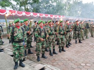 Timika , – EKOIN – CO – Menyambut Hari Ulang Tahun (HUT) Ke-80 Kemerdekaan Republik Indonesia, personel Kodim 1710/Mimika turut ambil bagian dalam kegiatan Taptu dan Pawai Obor yang digelar di Kabupaten Mimika pada Jumat, 16 Agustus 2025, malam. Upacara Taptu dan pawai obor ini merupakan tradisi dalam rangka menyemarakkan peringatan kemerdekaan RI.