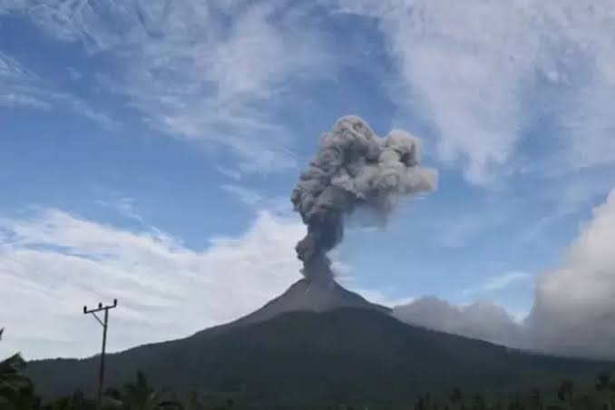 Erupsi Gunung Lewotobi Laki-laki di Flores Timur, NTT, terjadi pada Senin, 18 Agustus 2025, dengan kolom abu setinggi 8.000 meter. Status gunung kini berada di level IV awas.