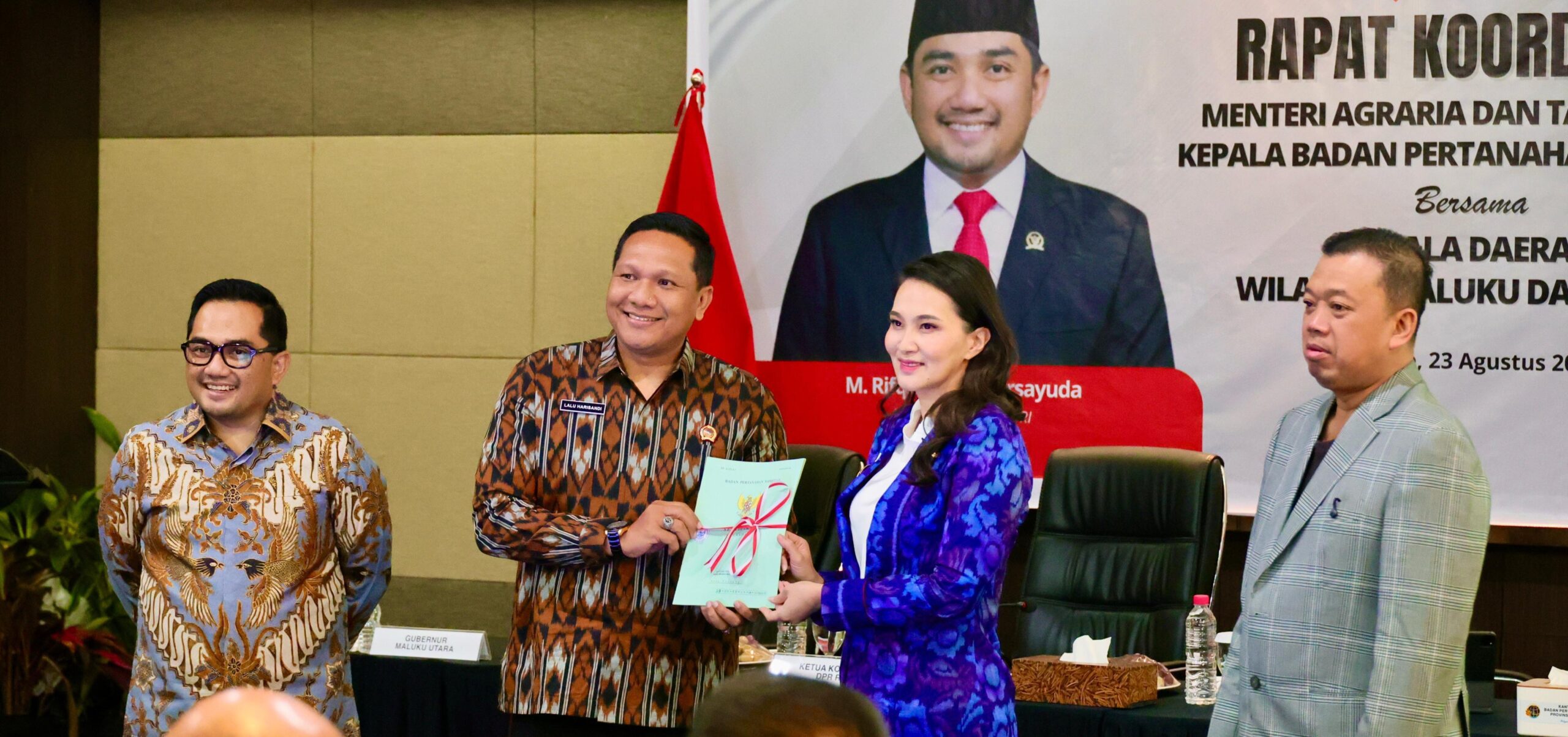 Dalam kesempatan ini, Menteri Nusron yang didampingi Ketua Komisi II DPR RI, Muhammad Rifqinizamy Karsayuda, menyerahkan 28 sertipikat aset Pemerintah Provinsi Maluku Utara dan 15 Sertipikat Elektronik hasil program Pendaftaran Tanah Sistematis Lengkap (PTSL).