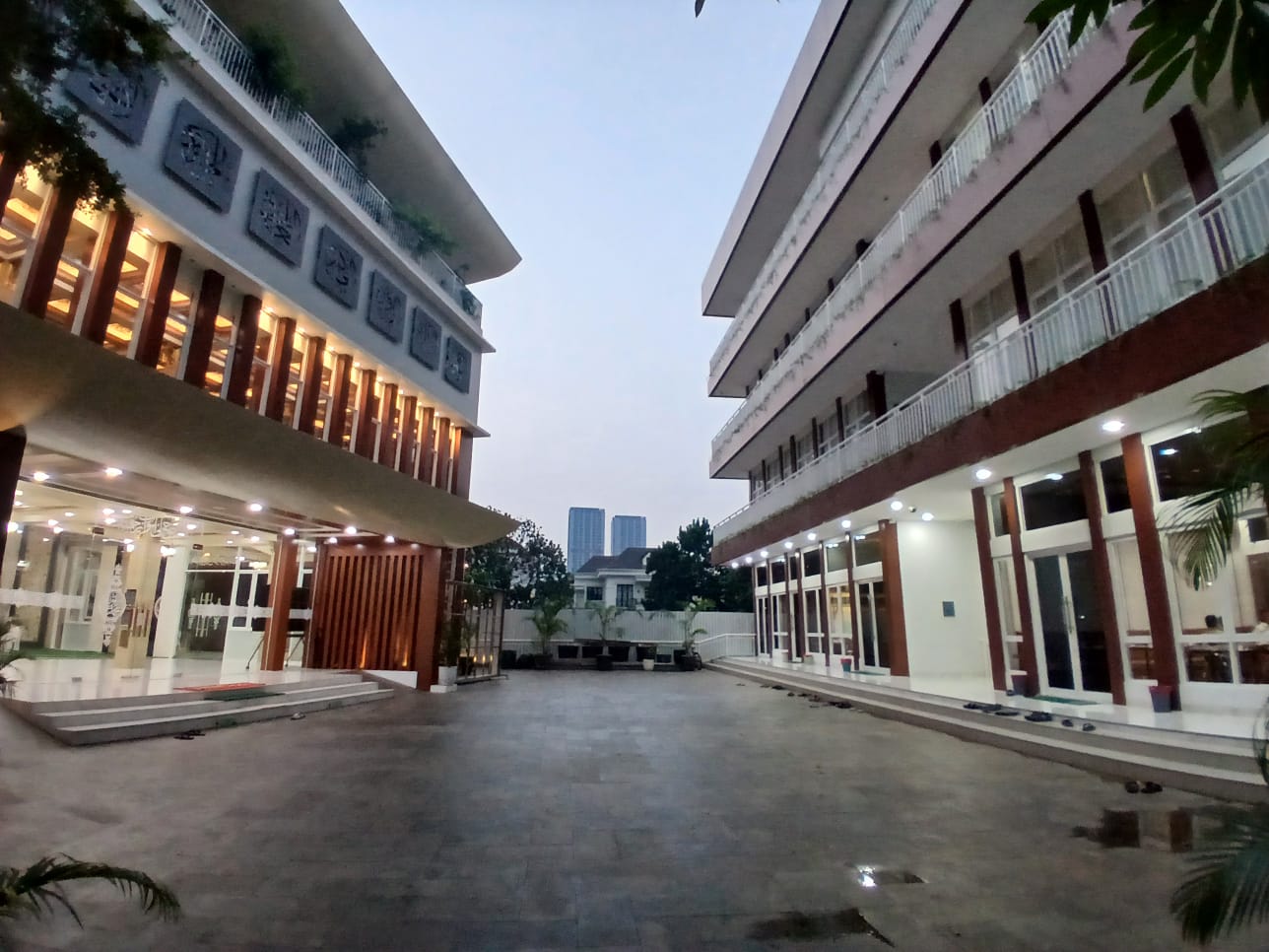 Tak berhenti di situ, di depan masjid berdiri gedung multifungsi yang mengakomodasi kebutuhan jamaah. Di lantai dasar tersedia kafe dan ruang pertemuan, lantai dua dan tiga difungsikan sebagai hunian para ustaz, sementara lantai empat menghadirkan fasilitas kebugaran (fitness center). Klinik kesehatan juga tersedia untuk melayani masyarakat.