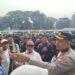 Polisi lalu lintas yang berjaga di sekitar kawasan tersebut tampak berupaya mengurai kemacetan dengan mengarahkan kendaraan ke jalur alternatif. Namun, kepadatan tetap sulit dihindari karena volume kendaraan tinggi pada jam sibuk.