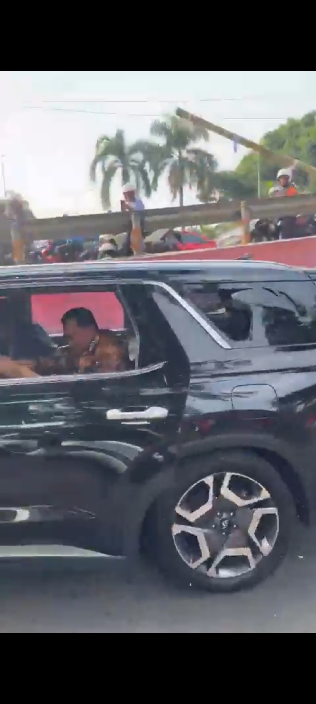 Di tengah kerumunan, seorang demonstran terdengar berteriak keras dengan kata-kata kasar yang menyasar pengendara mobil. Suasana makin tegang ketika pengemudi berusaha melarikan diri. Namun, kepadatan lalu lintas di Jalan Gerbang Mandala membuat mobil tersebut sulit bergerak cepat.