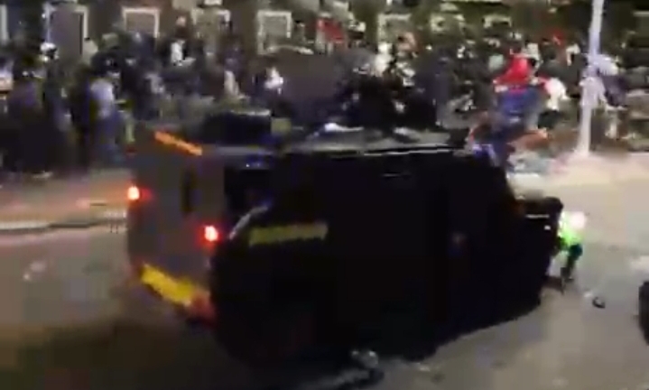 Massa yang menyaksikan kejadian itu langsung berusaha menghentikan mobil rantis agar tidak melanjutkan laju. Namun, upaya mereka tidak berhasil. Korban yang sudah terjatuh justru kembali terlindas saat mobil tetap bergerak maju.