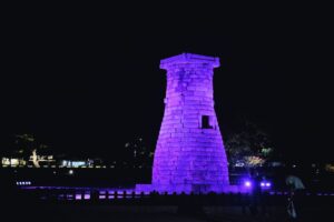 Dalam bahasa Korea, Cheomseongdae berarti “menara pengamat bintang”. Struktur bersejarah ini dibangun dari 365 batu granit yang melambangkan jumlah hari dalam setahun, serta terdiri dari 27 lapisan batu yang diyakini mewakili Ratu Seondeok sebagai penguasa ke-27 Kerajaan Silla. Dengan tinggi sekitar 9,17 meter, bangunan ini memiliki jendela persegi di bagian tengah yang digunakan untuk mengamati pergerakan bintang, penyesuaian kalender, hingga ritual agraris.