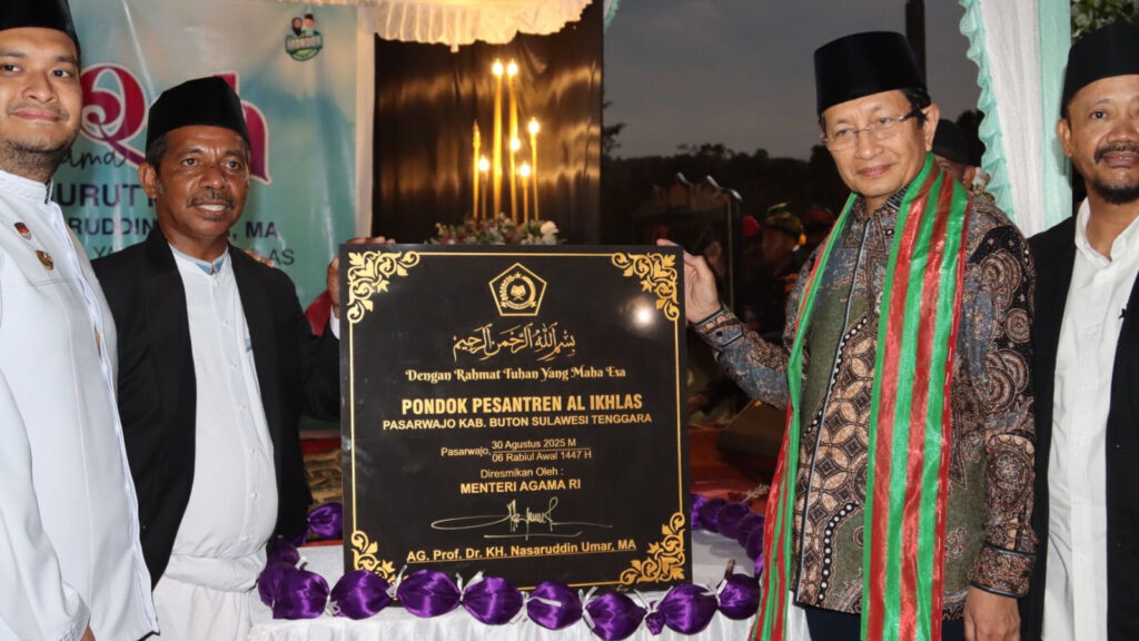 Buton EKOIN.CO – Menteri Agama Nasaruddin Umar meresmikan Pondok Pesantren Al-Ikhlas di Pasar Wajo, Kabupaten Buton, Sulawesi Tenggara, pada Sabtu (30/8/2025). Dalam acara peresmian tersebut, Menag menekankan pentingnya ciri khas pesantren yang menggabungkan budaya lokal dengan nilai-nilai Islam universal.