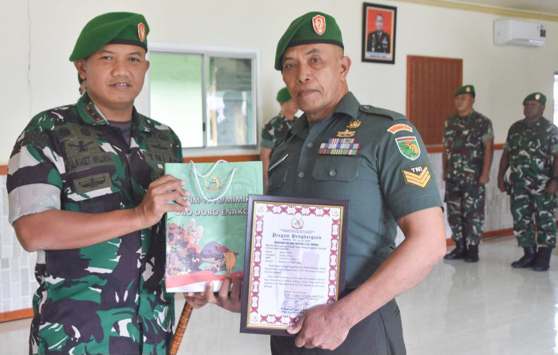 “Saya selaku Komandan Kodim 1710/Mimika secara pribadi juga atas nama keluarga besar Kodim 1710/Mimika, saya ucapkan selamat kepada Kapten Inf Gertaim Pakpahan yang akan bertugas di satuan baru dan kepada Serka Agus Salim yang akan memasuki purna tugas,” ujar Dandim.