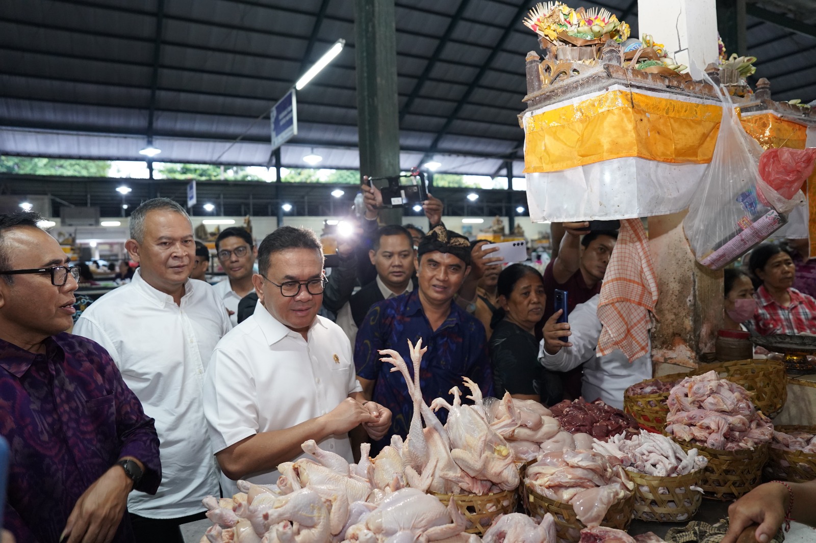 Denpasar, – EKOIN – CO – Menteri Perdagangan Republik Indonesia, Budi Santoso, meninjau harga dan pasokan barang kebutuhan pokok (bapok) di Pasar Nyanggelan, Denpasar, Bali, Selasa (9/9). Dalam kunjungan ini, Mendag memastikan stok bapok di pasar tersebut cukup dan harganya terkendali.