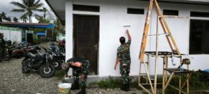 Timika -, EKOIN – CO – Dalam rangka memperingati HUT Ke-80 TNI tahun 2025 pada tanggal 5 Oktober mendatang, Kodim 1710/Mimika menyelenggarakan rangkaian kegiatan Bakti Teritorial Prima tahun 2025, salah satunya adalah perbaikan fasilitas kesehatan yang dilaksanakan di Puskesmas Jiliale, Kel. Karang Senang, Distrik Kuala Kencana, Kab. Mimika yang dipimpin oleh Danramil 1710-04/Tembagapura Kapten Inf Hely Sukmajaya, Kamis (18/09/2025). Perbaikan Puskesmas kali ini fokus pada perbaikan atap penggantian seng dan pengecatan dinding.