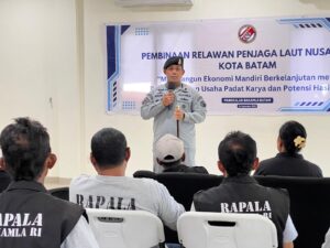 Batam, EKOIN.CO – Bakamla RI melalui Pangkalan Bakamla Batam menggelar pembinaan terhadap 30 Rapala Kota Batam. Tujuan kegiatan memperkuat kapasitas Rapala sekaligus mendorong kemandirian ekonomi masyarakat pesisir. Kegiatan dilaksanakan di Aula Pangkalan Bakamla Batam, Rabu (24/9/2025).