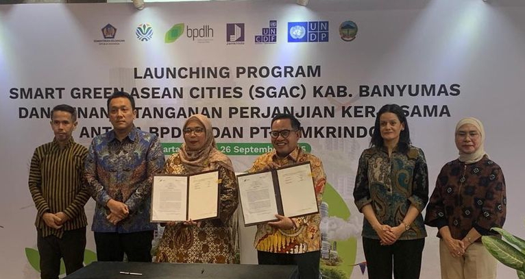 Jakarta, EKOIN.CO – Pemerintah Indonesia melalui Badan Pengelola Dana Lingkungan Hidup (BPDLH) meneken nota kesepahaman (MoU) dengan United Nations Development Programme (UNDP) dan PT Jaminan Kredit Indonesia (Jamkrindo) pada program Smart Green ASEAN Cities (SGAC) di Jakarta pada Jumat (26/9/2025). Langkah ini ditujukan memperkuat ekosistem pembiayaan hijau di sektor pengelolaan sampah dengan pilot project dimulai dari Kabupaten Banyumas.