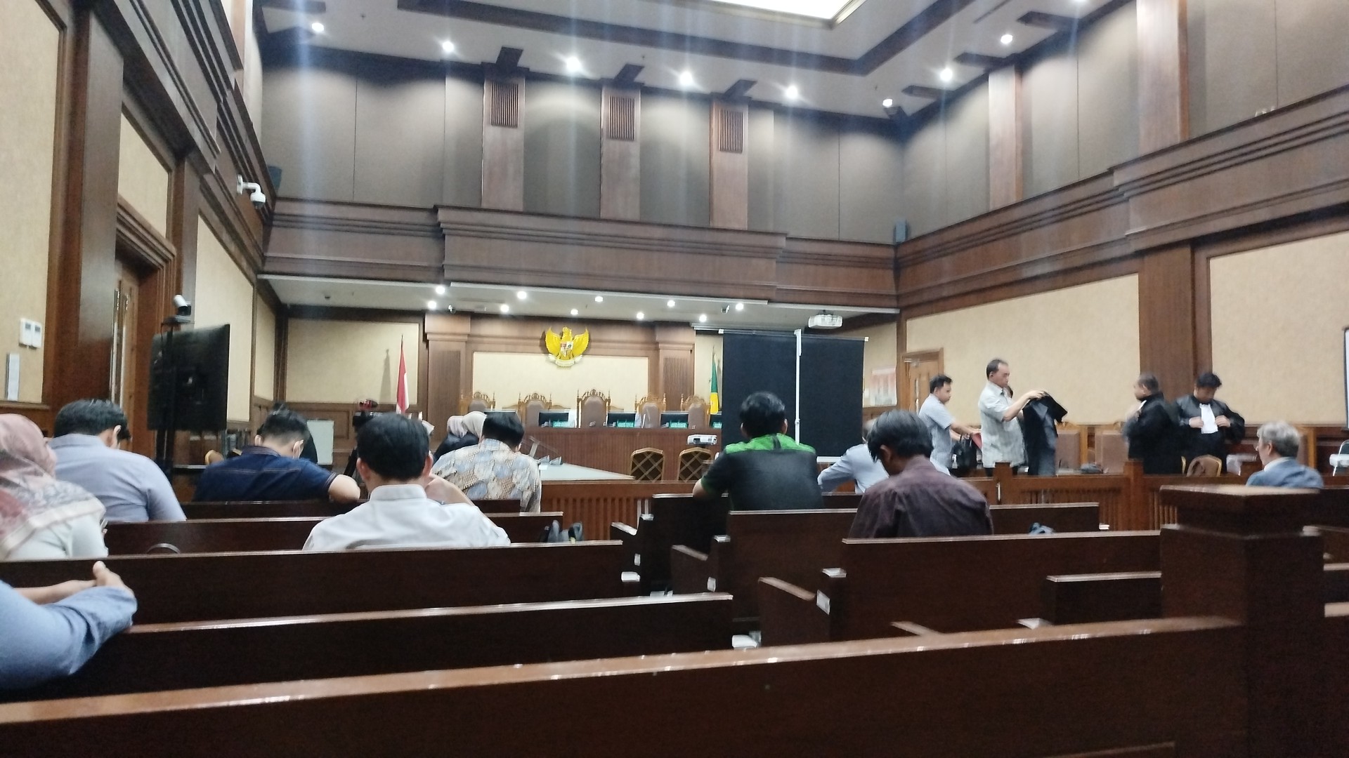 “Iya, tadi kan sudah jelas disampaikan ahli, bahwa secara hukum negara, ketika sudah mendelegasikan itu ke bawah, ini tidak punya tanggung jawab atau kewenangan. Jadi murni yang bertanggung jawab adalah para pejabat yang berwenang. Tidak bisa dikatakan terdakwa bertanggung jawab terhadap hal itu,” kata Ezar.