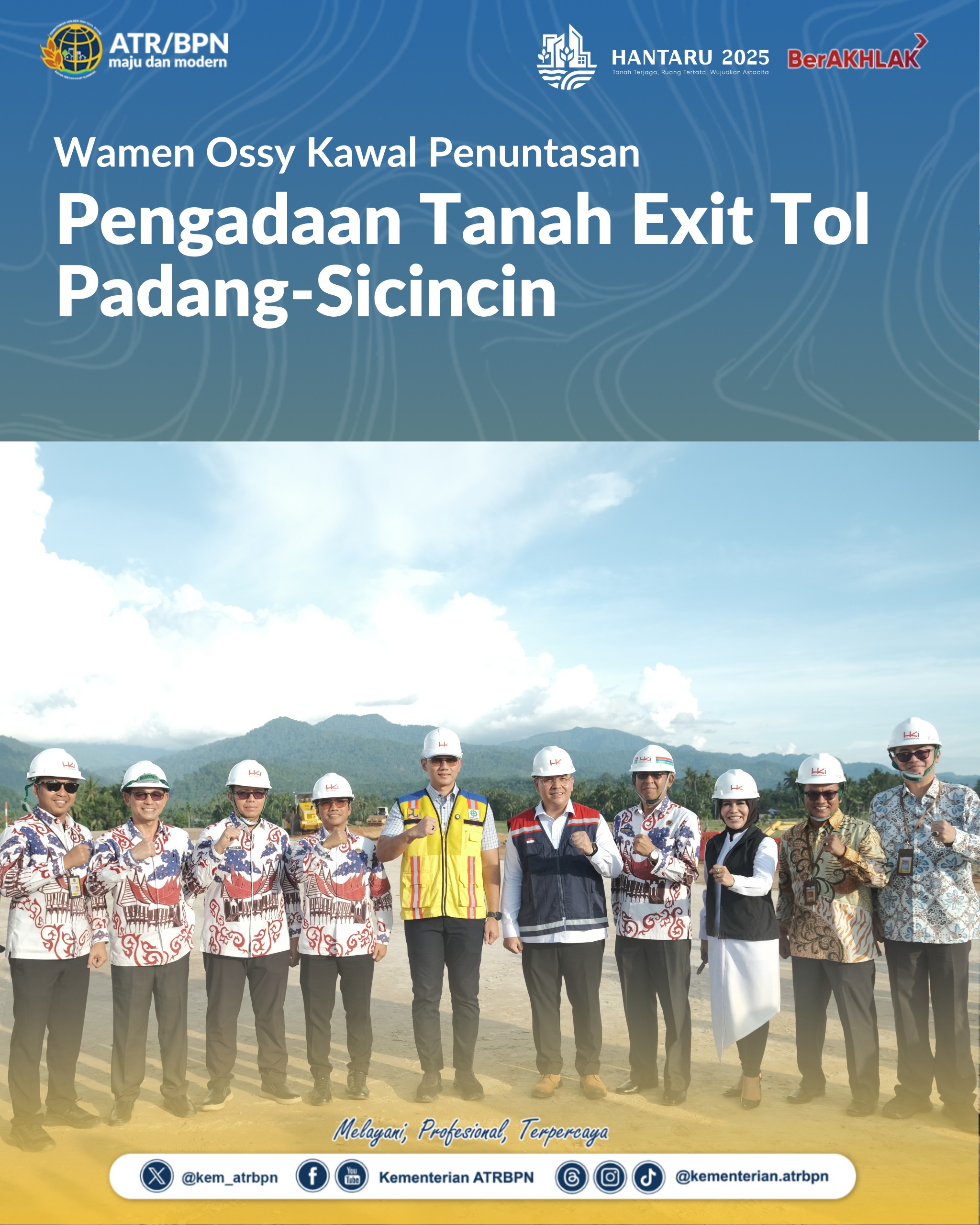 “Kami akan terus kawal terkait ini (progres pengadaan tanah), namun kami tetap mohon atensi kepada Pak Wakil Gubernur Sumatera Barat agar penyamaan persepsi dengan Kementerian ATR/BPN dalam percepatan pengadaan tanah ini,” ujar Wamen Ossy.