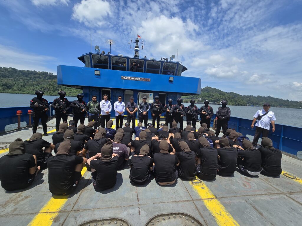 Cilacap, EKOIN.COM – Pulau Nusakambangan kembali menerima warga binaan high risk . Kali ini berasal dari 4 (empat) wilayah di Sumatera, yaitu Aceh, Sumatera Utara, Riau dan Jambi, sebanyak 41 orang. “Hari ini kami menerima 41 warga binaan high risk, kami proses sesuai dengan SOP. Selanjutnya kami tempatkan di beberapa Lapas sesuai hasil assesment,”kata Irfan , Koordinator Wilayah Nusakambangan yang juga Kepala Lapas Kelas 1 Batu, Nusakambangan.