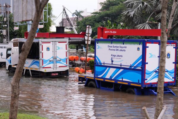 Seluruh pompa air permanen maupun mobile dioperasikan untuk mempercepat surutnya genangan, termasuk membuka jalur aliran air menuju laut melalui pintu air Marina.