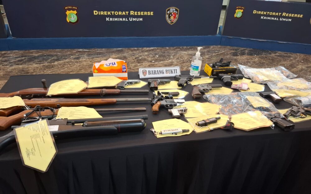 Dari hasil pengungkapan ini, polisi menangkap lima orang tersangka berinisial IM, RA, RR, JS, dan SA. Petugas juga menyita barang bukti berupa 20 pucuk senjata api yang terdiri dari 11 senpi rakitan dan 9 pucuk airsoft gun, serta 233 butir peluru berbagai kaliber.