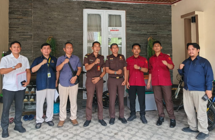 Selanjutnya, tim melakukan pemasangan stiker sita pada objek aset yang disaksikan oleh saksi setempat, yakni petugas keamanan lingkungan rukun tetangga.
