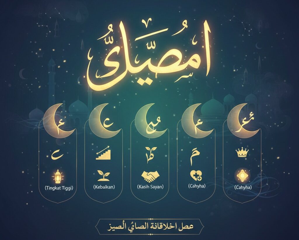 Ilustrasi visual yang menggambarkan kedalaman spiritual bulan Sya'ban sebagai bulan persiapan menuju Ramadhan. Melalui pengamalan shalawat dan pemaknaan lima huruf hijaiyah di dalamnya, umat Muslim diajak untuk membersihkan noda-noda hati agar meraih predikat mulia di sisi Allah SWT. (Ekoin.co/Ilustrasi/Istimewa)